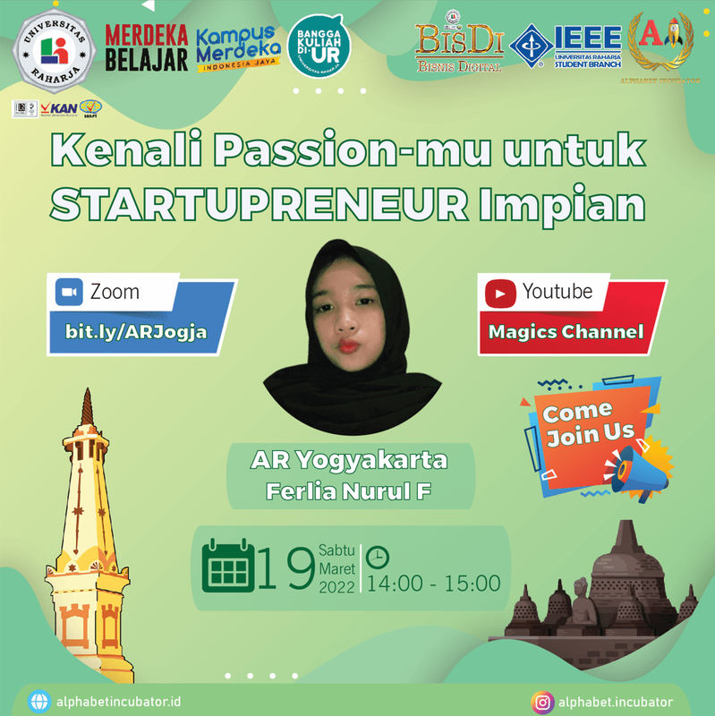 AR Atau Ambassador Raharja merupakan program yang diselenggarakan oleh Universitas Raharja (UR) yang bertujuan untuk mencari siswa dan siswi terbaik yang berminat serta memiliki antusias mencari pengalaman serta belajar ilmu & keahlian untuk memulai sebuah startup. Alhamdulillah sudah terlaksa 3 AR dari bebagai daerah yaitu sebagai beriku :